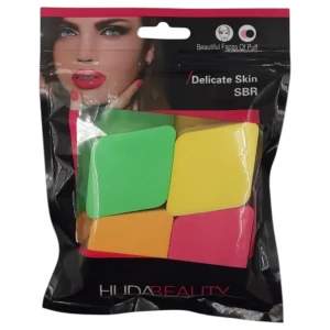 طقم إسفنجات التجميل من Huda Beauty يحتوي على 4 قطع بألوان مميزة (أخضر، أصفر، برتقالي، وردي) بتصميم كبسولي مسطح، يجمع بين الشكل المستطيل والزوايا الدائرية. هذا الشكل يوفر تغطية متساوية للمناطق الواسعة من الوجه، ويمنح لمسة ناعمة مثالية لتوزيع المكياج بشكل طبيعي ومريح.