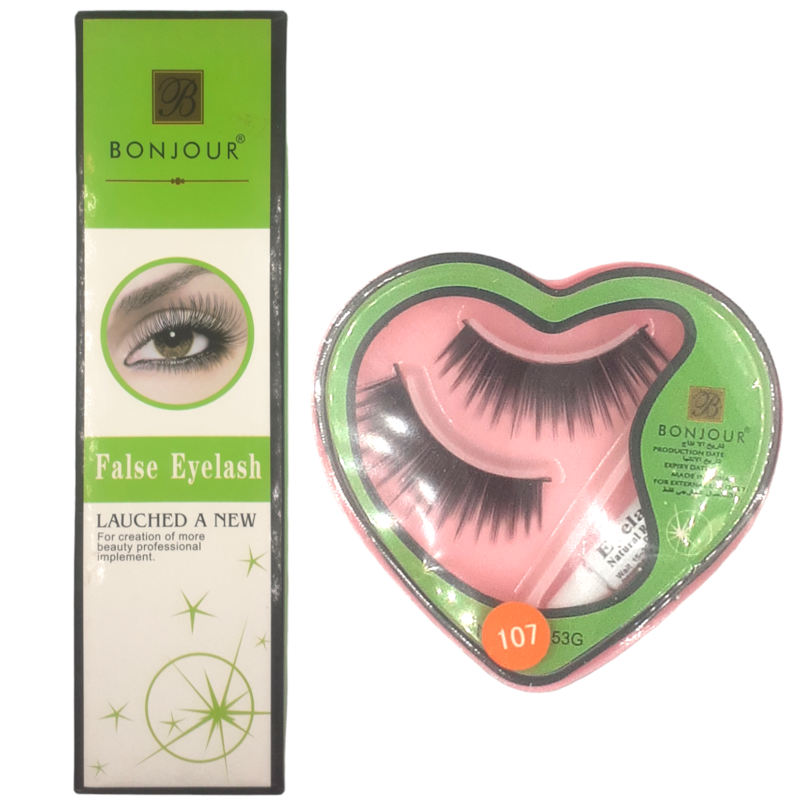 رموش Bonjour – رقم 107 هي رموش صناعية بسيطة مصممة لإضفاء لمسة جمالية سريعة على العين. تأتي داخل علبة بلاستيكية بشكل قلب، تحتوي على زوجين من الرموش + لاصق صغير، وتناسب من تبحث عن مظهر جمالي مؤقت بتكلفة منخفضة.