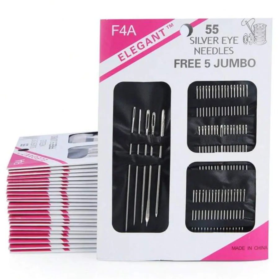 55 إبرة فضية مصنوعة من الفولاذ المقاوم للصدأ، مما يضمن القوة والمتانة.