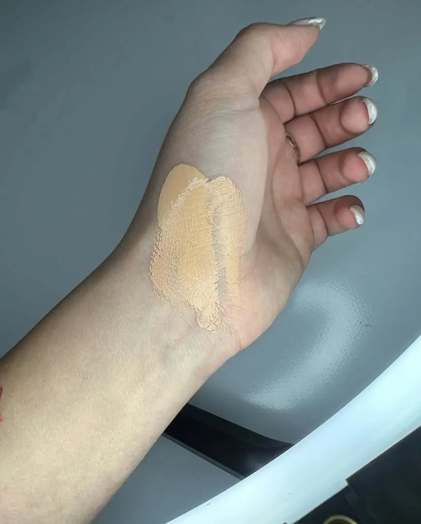 استخدمي إسفنجة مكياج أو فرشاة لتوزيع كريم الأساس بالتساوي على الوجه.