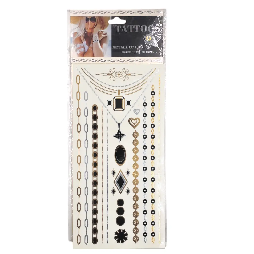 مجموعة الوشوم المعدنية METALLIC LUSTER هي مجموعة فاخرة من الوشوم المؤقتة بتصاميم عصرية أنيقة باللونين الذهبي والفضي، تضيف لمسة لامعة وفريدة على البشرة. صُممت خصيصًا لتلائم الإطلالات الجريئة والمناسبات المميزة، من الحفلات والسهرات إلى الأيام الشاطئية والمهرجانات.