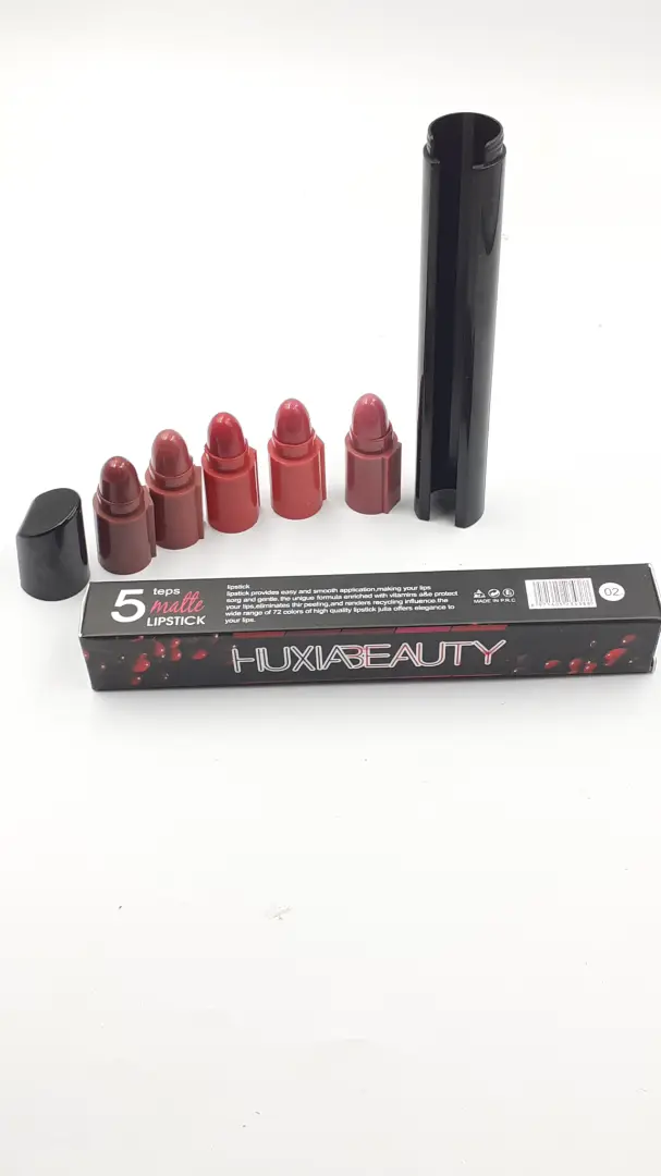 طقم أحمر شفاه HUXIABEAUTY "5 Steps Matte Lipstick" هو مجموعة مكونة من 5 درجات أنيقة من الأحمر، مصممة لتمنح شفتيك مظهراً مطفيًا جذاباً وتغطية متساوية وسهلة التطبيق. تأتي بتغليف أنيق يحتوي على عبوة سوداء فاخرة وأغطية مغناطيسية، لتوفير تجربة استخدام راقية وعملية في نفس الوقت.